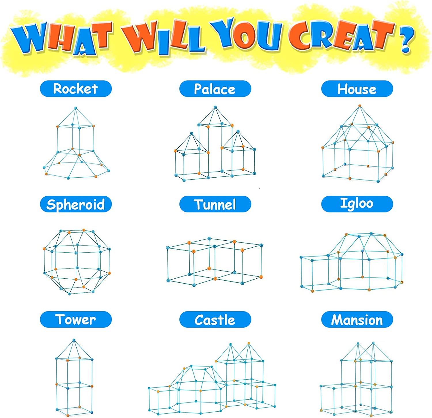 Con el Kit Mágico de Construcción de Fortalezas, tú y tus hijos pueden embarcar en una aventura de bricolaje, construyendo desde cuevas y túneles hasta fortalezas, cohetes, tiendas de campaña y casas. Este kit único ofrece posibilidades infinitas para la diversión en familia, convirtiéndolo en la adición perfecta a tus actividades de juego.