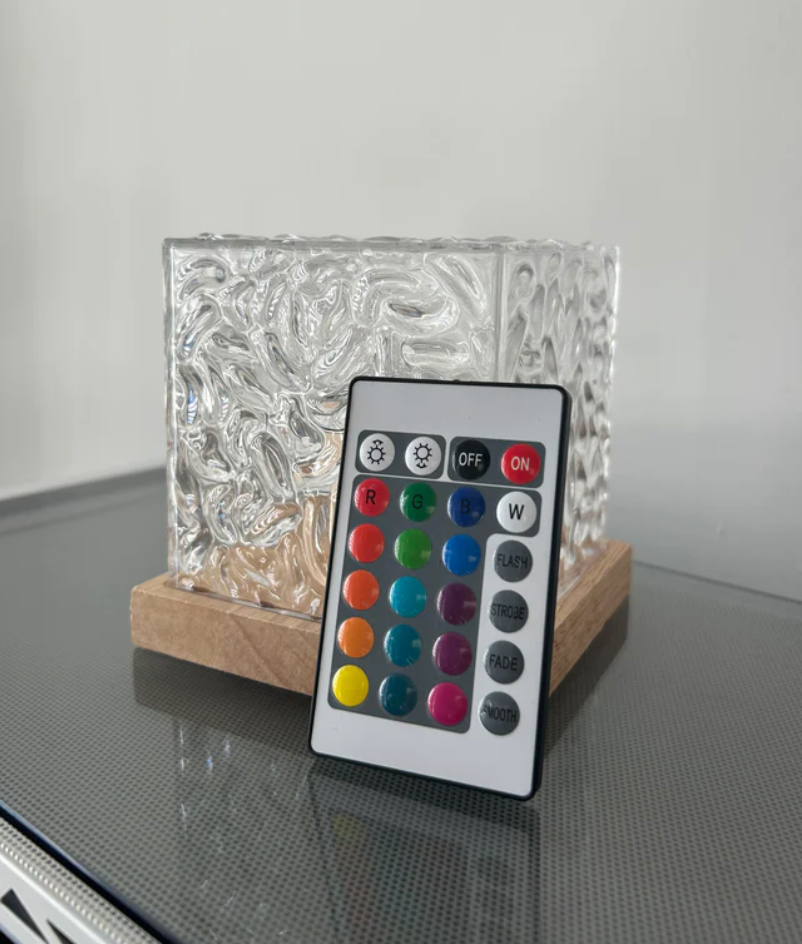 Fabricado con materiales de alta calidad, su cubierta externa de acrílico garantiza durabilidad y un atractivo visual impresionante. En su interior, una placa de luz giratoria recrea la etérea danza de las Auroras Boreales. Esta obra maestra reposa sobre una base madera, añadiendo calidez natural a su diseño. La forma de diamante de AuraGlide se integra perfectamente en cualquier rincón, añadiendo un toque de lujo sin esfuerzo a tu entorno.