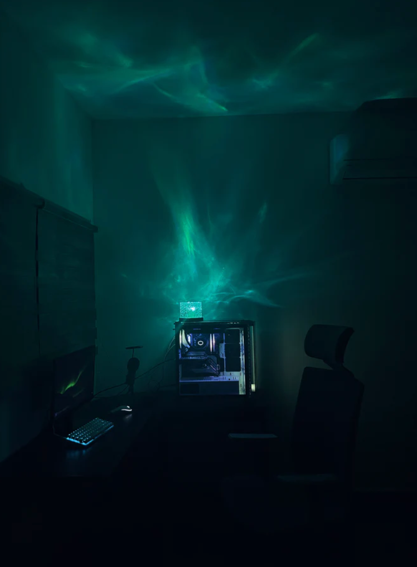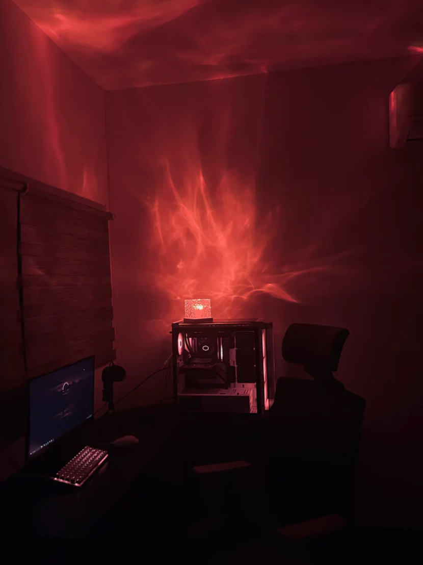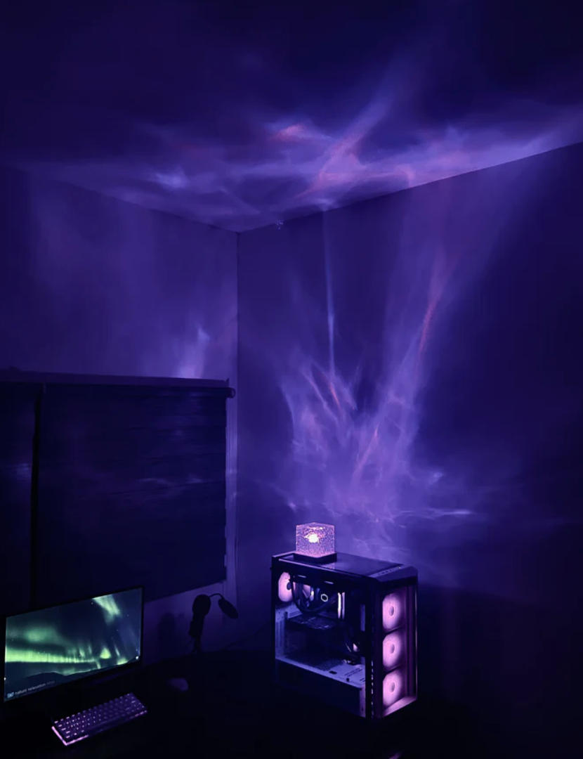 Experimenta la magia de una aurora boreal en tu propia casa. Esta lámpara crea una atmósfera de calma y elegancia con sus hipnotizantes luces de aurora, fomentando la relajación y la serenidad en cualquier habitación. Las ondas de luz envuelven tu espacio, transformándolo en un refugio de creatividad, serenidad y tranquilidad.